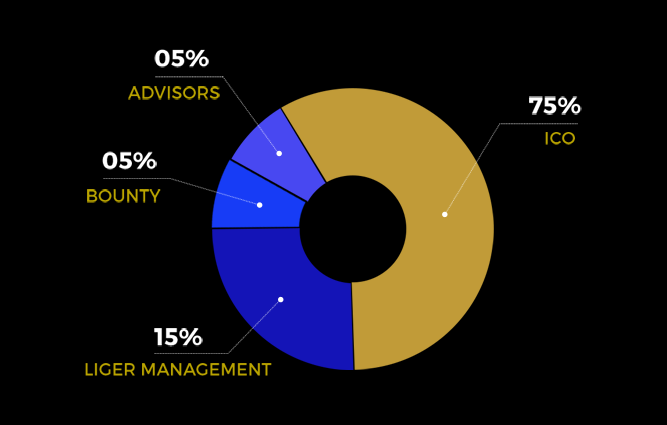 Per il progetto vengono creati 2,7 miliardi di token LIGER in cui il 70% dei token è riservato all'ICO. La pre-vendita dei token è attualmente in diretta sulla piattaforma fino al 16 giugno 2018. L'ICO principale inizierà il 17 giugno 2018 e continuerà fino al 1 agosto 2018. I fondi saranno utilizzati per lo sviluppo e il marketing della piattaforma. Il team è esperto nel campo della tecnologia blockchain e delle startup.